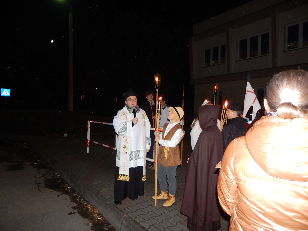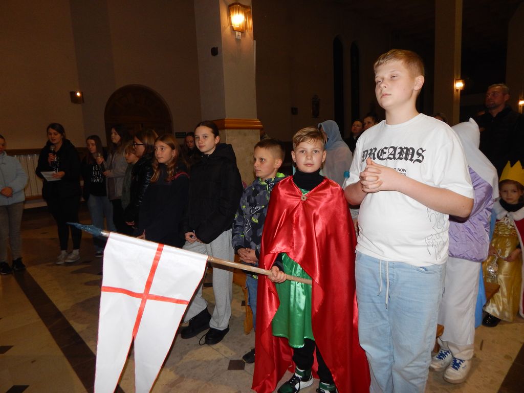 Po zakończeniu przemarszu wszyscy zgromadziliśmy się w kościele, gdzie wspólnie odmówiliśmy modlitwę, której przewodniczył ks. Marcin. Dziękowaliśmy Panu Bogu za przykład życia świętych oraz prosiliśmy o ich opiekę i wstawiennictwo w codziennym życiu.