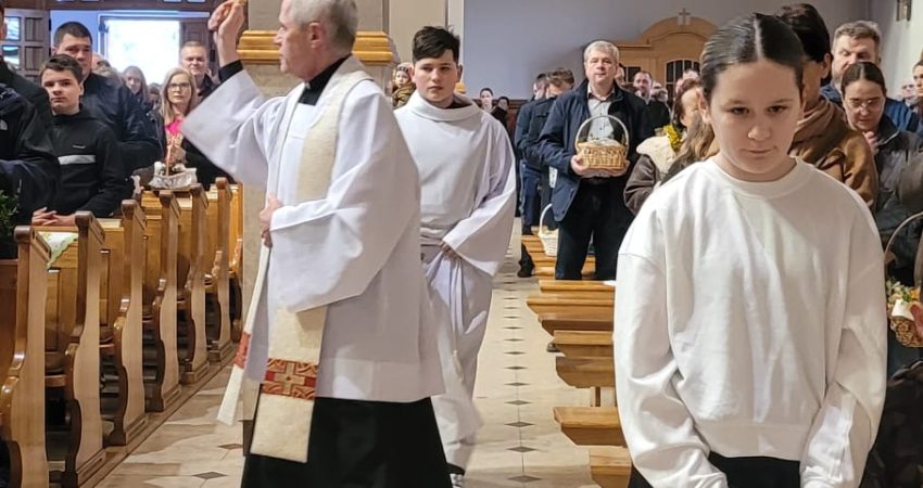 WIGILIĘ PASCHALNĄ rozpoczęliśmy na zewnątrz kościoła. Celebrans, ks. proboszcz Jerzy Filek, poświęcił ogień, od którego zapalony został paschał, świeca symbolizująca Jezusa Chrystusa – Światłość świata. W kościele ks. Marcin uroczyście odśpiewał Exsultet, orędzie wielkanocne, wprowadzające nas w radość Zmartwychwstania. W…