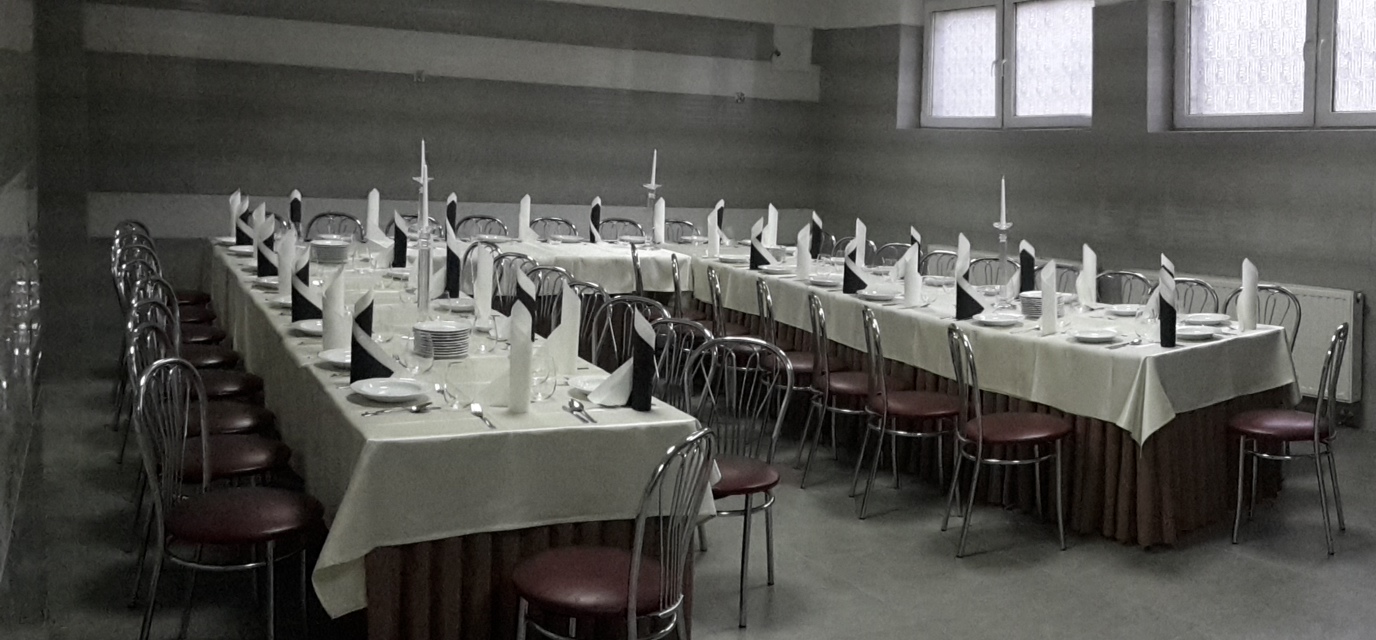 Jedno pomieszczenie przeznaczone jest dla 60 osób, drugie dla 120 osób. Zapewniamy obsługę cateringową. Przy obiekcie znajduje się obszerny parking.