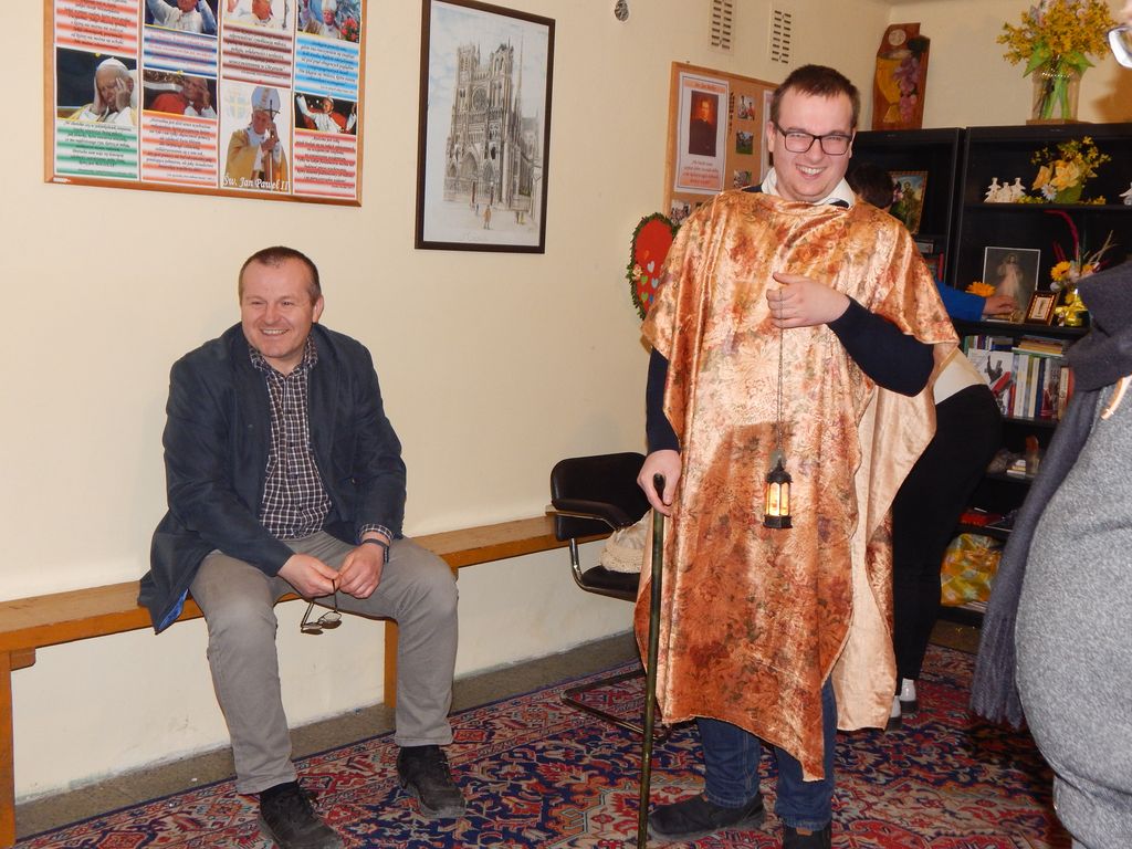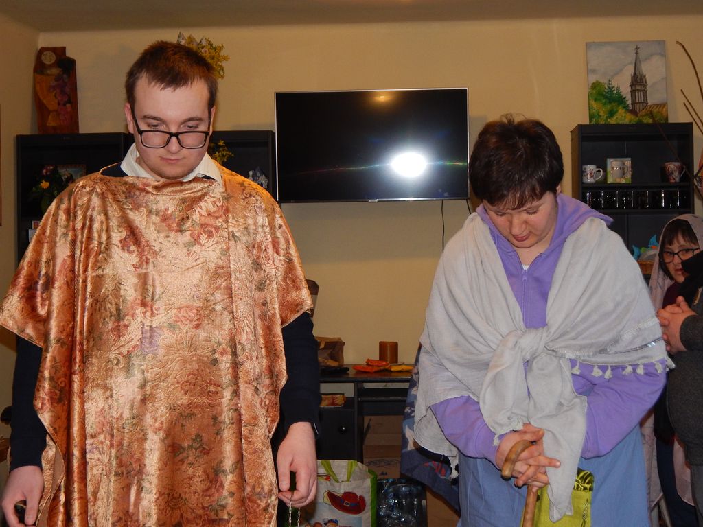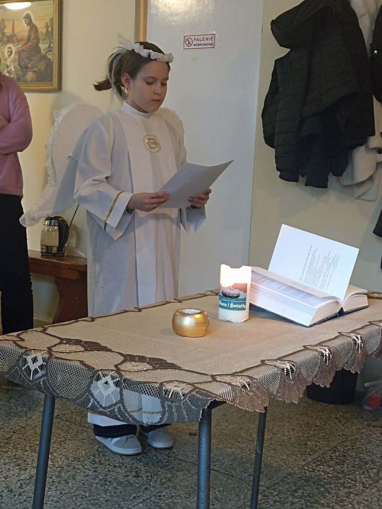 Po Koronce do Bożego Miłosierdzia odgrywaliśmy scenkę związaną z narodzeniem św. Jana Chrzciciela. Przypomnieliśmy historię jego ojca, Zachariasza – kapłana, który w świątyni otrzymał od anioła Gabriela niezwykłą wiadomość, że mimo podeszłego wieku jego żona Elżbieta urodzi syna. Chłopiec miał otrzymać imię Jan i przygotować ludzi na przyjście Mesjasza.
