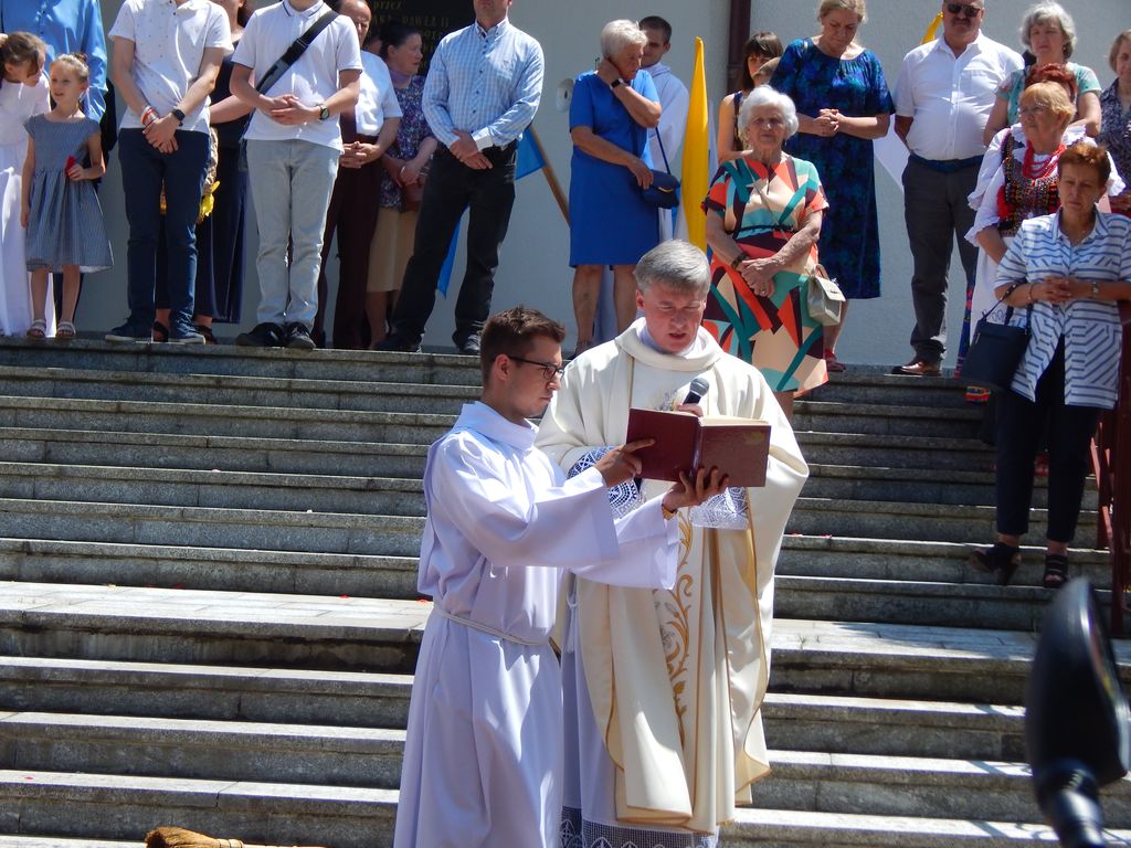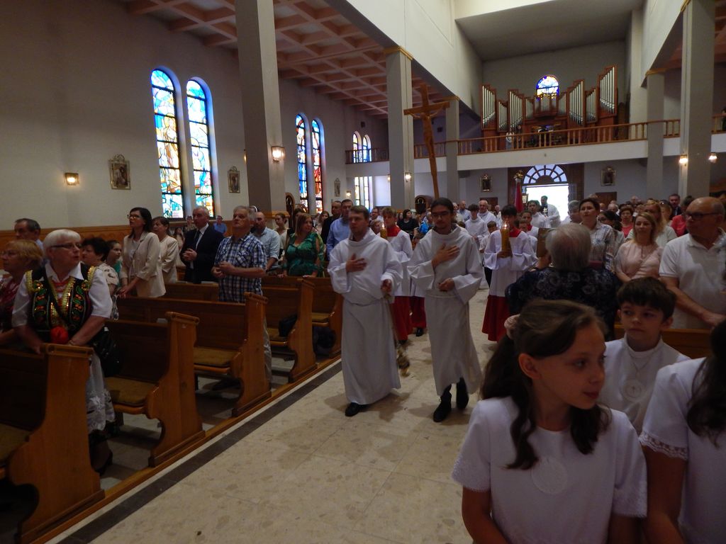 W tym roku odpust parafialny był 8 czerwca, a więc dokładnie w dniu, w którym czcimy Niepokalane Serce Maryi. Posoborowa reforma liturgiczna przesunęła to święto na sobotę po uroczystości Najświętszego Serca Jezusa, stąd zmiana terminu odpustu z sierpnia na czerwiec. Będzie to teraz ruchome święto w parafii. W tym dniu również swój Jubileusz 30 – lecia kapłaństwa świętował nasz ks. Proboszcz Piotr. Kazanie na Mszy Świętej odpustowej wygłosił ks. Krzysztof Wąs – kapelan Szpitala Bonifratrów w Krakowie. Po skończonej uroczystości ks. Proboszcz poświecił nowy wóz strażacki oraz quada OSP Siersza.